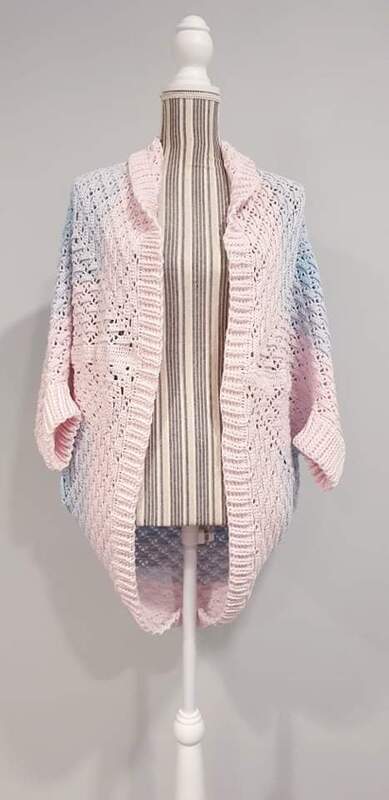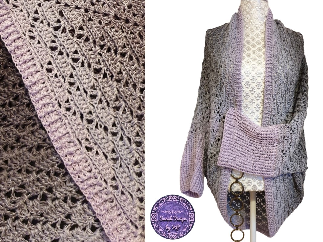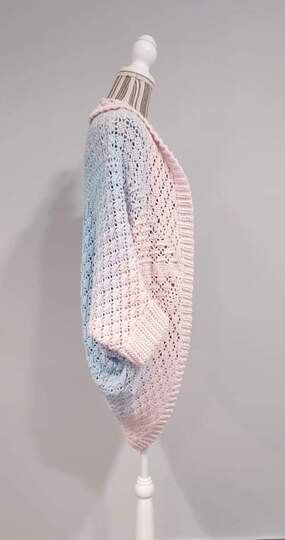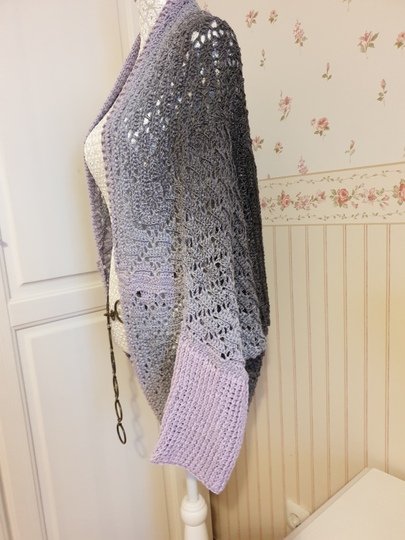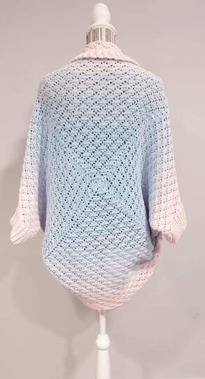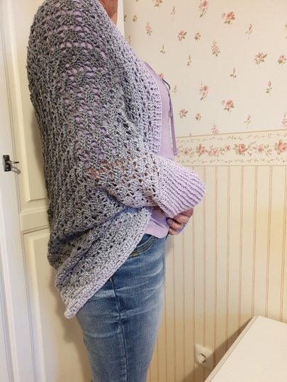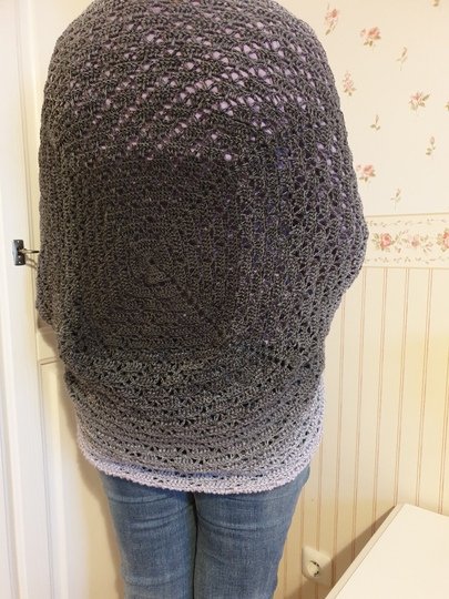 Es wird zunächst ein Quadrat gehäkelt, das in der Mitte angefangen wird. Dann wird dieses Quadrat an nur 2 Stellen zusammengenäht, eine Umrandung, Ärmel und Bündchen (optional) gearbeitet und schon hat man eine etwas weitere Jacke.