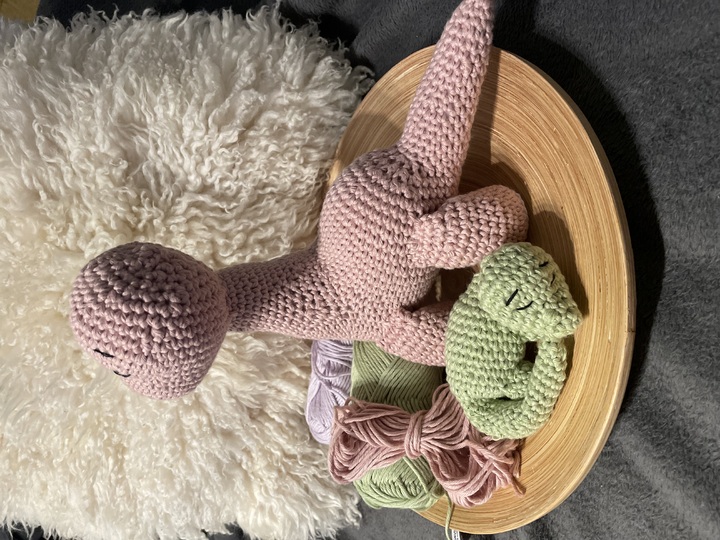 Bei der Verwendung des Materials aus der Anleitung, wird Dinolina ca. 25-30 cm groß.