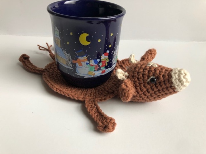 Untersetzer kann man immer gebrauchen und wenn sie noch so einmalig gehäkelt aussehen wie die Kuh Oskar oder Eberhard Schwein, werden sie gleich noch häufiger von Kindern oder Erwachsenen genutzt.