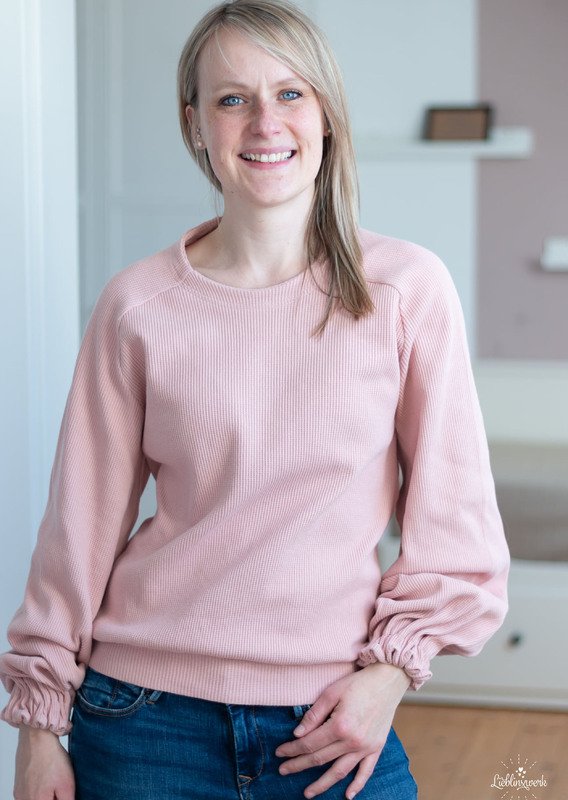 Brunhilde ist ein Schnittmuster für einen schlichten, leicht verspielten, romantsichen Raglan-Pullover in Gr. 34-50.