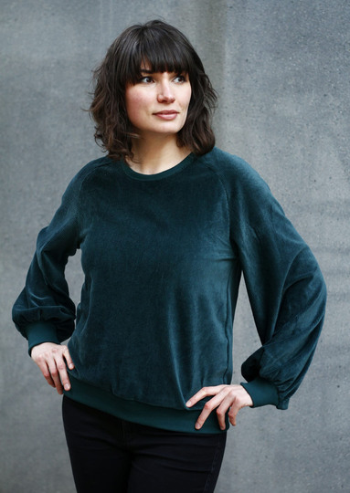 Brunhilde hat eine legere Passform und kann somit auch an lauen Sommerabenden übers T-Shirt oder Kleid getragen werden. Die Raff-Abschlüsse an Ärmeln und Saum geben dir die Möglichkeit einen ganz besonderen Pullover zu nähen. Durch die vielen Varianten kann Brunhilde ebenso zum schlichten Basic-Pullover mit Lieblingsteil-Garantie werden: