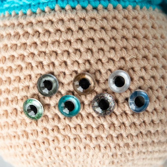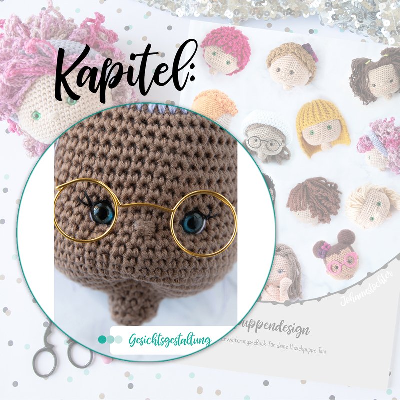 FOLGENDE THEMEN SIND INKLUDIERT: Brillen häkeln, Wimpern sticken, Lidfalte sticken, Textilfarbe verwenden. Augenfarbvarianten für transparente Sicherheitsaugen.