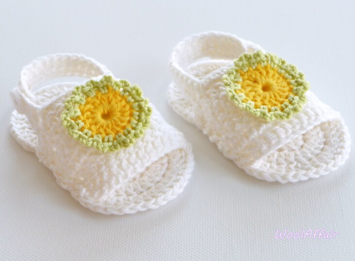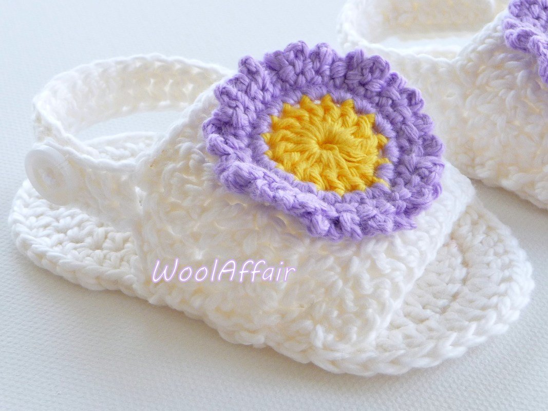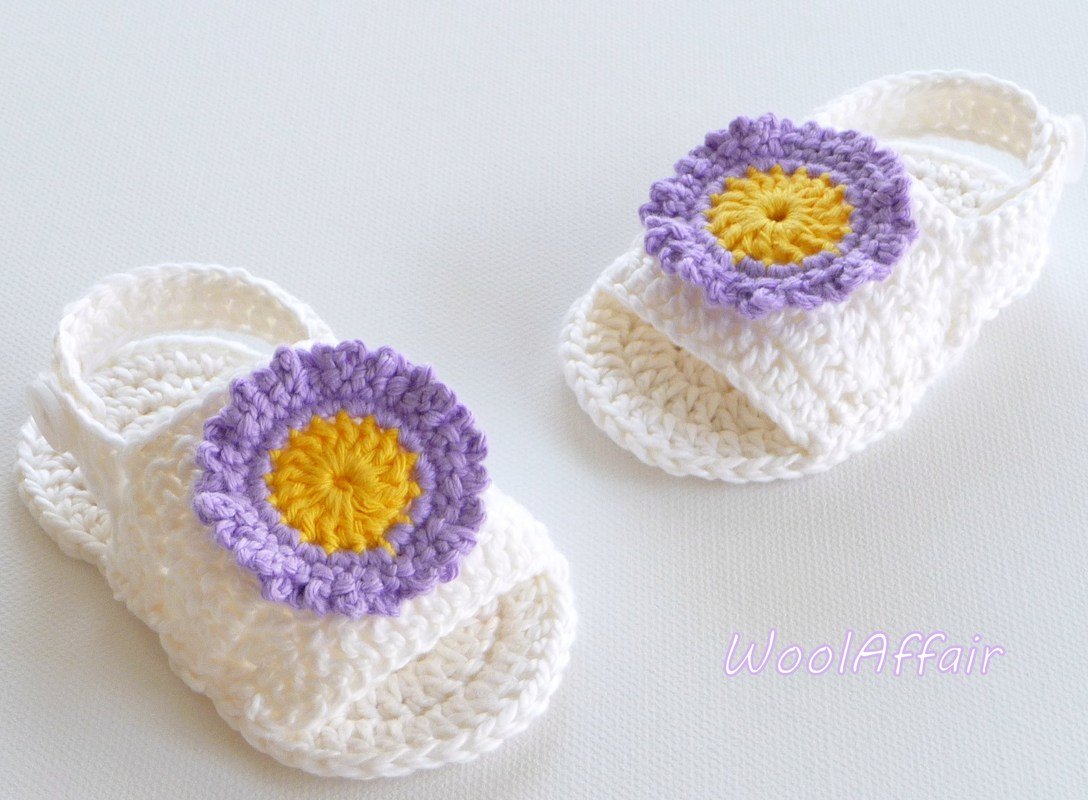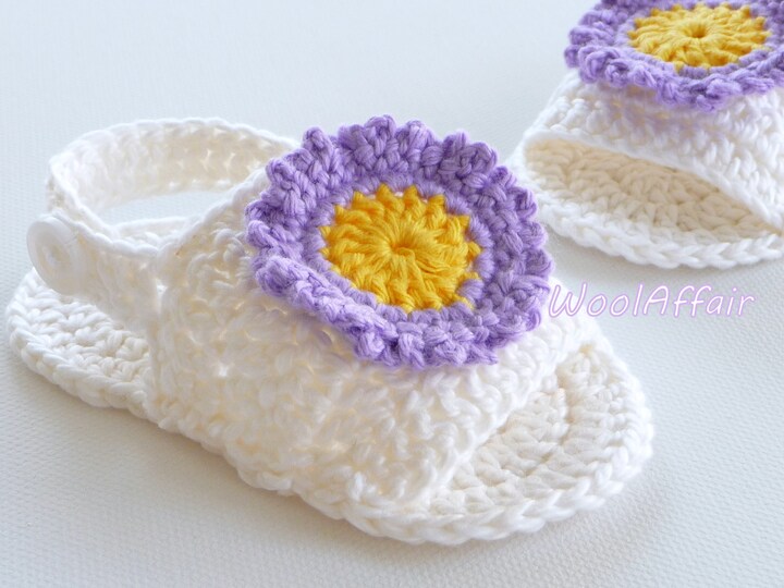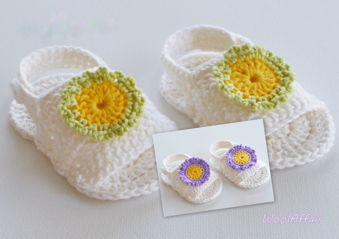 Ein Paar handgehäkelte Blüten-Sandalen / Sommerschuhe für deinen kleinen Schatz oder…