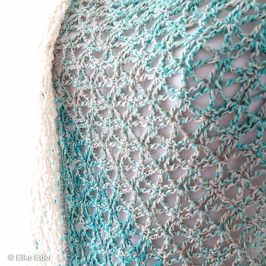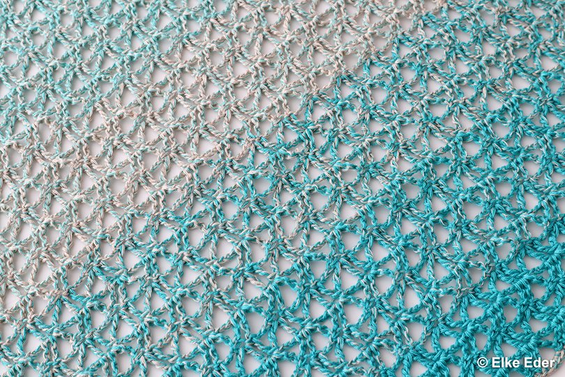 Das raffinierte Netzmuster besteht aus Luftmaschen und Doppelstäbchen und wiederholt sich alle 2 Reihen - somit geht es bereits nach ein paar Reihen leicht von der Hand.