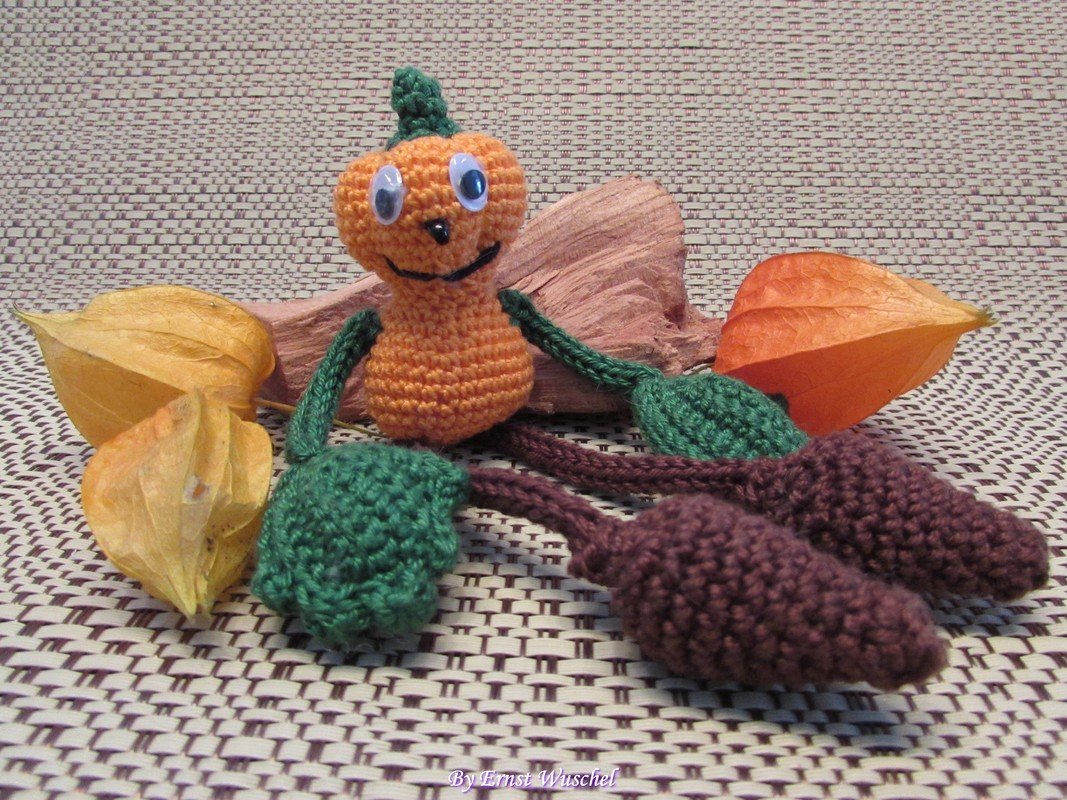 Deutsche Häkelanleitung für Karl Wuschelini, der Kürbis