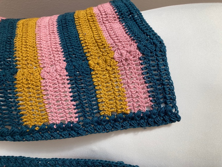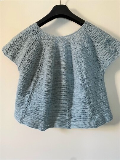Er wird in einem Stück als Rundpasse von oben nach unten gehäkelt und eignet sich deshalb auch gut für Farbverlaufsbobbel. Ihr müsst keine Einzelteile vernähen und könnt ihn jederzeit anprobieren, so dass ihr ihn unabhängig von Kleidergrößen genau auf euren Körper anpassen könnt.