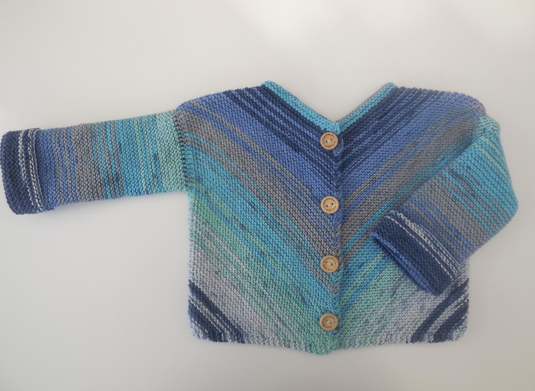 Ob einfarbig, aus Farbverlaufsgarn oder kunterbunt aus Wollresten ist dieses Jäckchen auf jeden Fall immer ein Hingucker.
