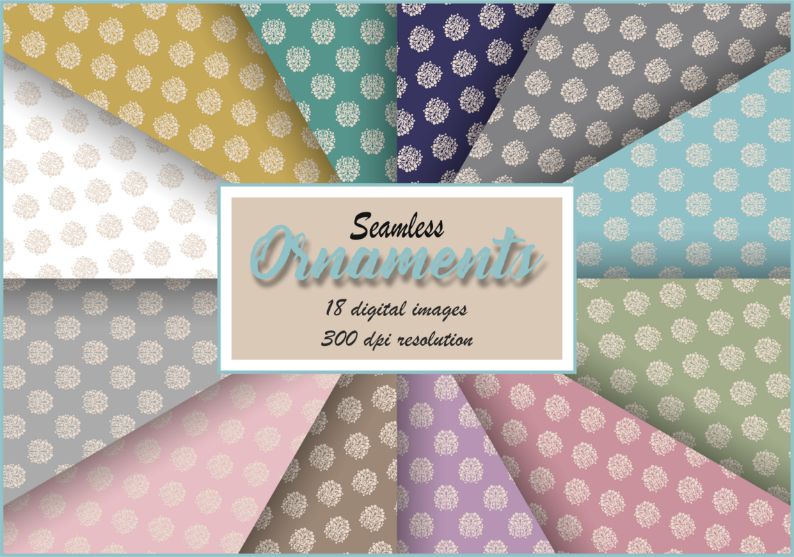 Nahtlose/endlose Ornamente in 18 Farbvarianten für Tapeten, Wandgestaltung, Einladungs- und Grußkarten, Scrapbooking, Wandbilder, Hintergründe, Geschenkpapier, Lesezeichen, Aufkleber, Gestaltung von T-Shirts, Handyhüllen und vieles mehr.