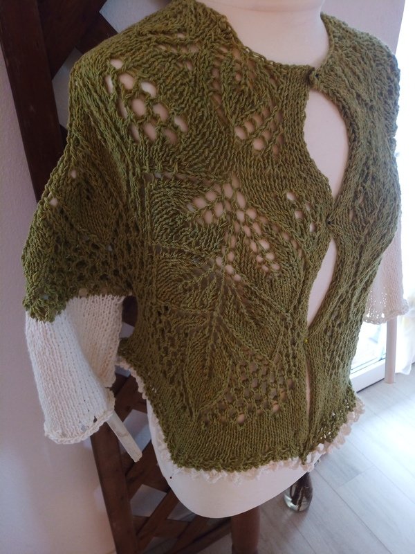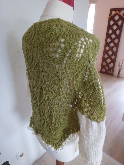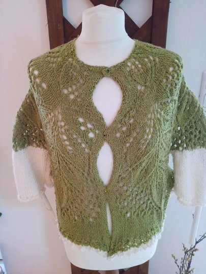 Ebenso ist es möglich anstatt der Strickjacke ein halbrundes Tuch zu stricken.