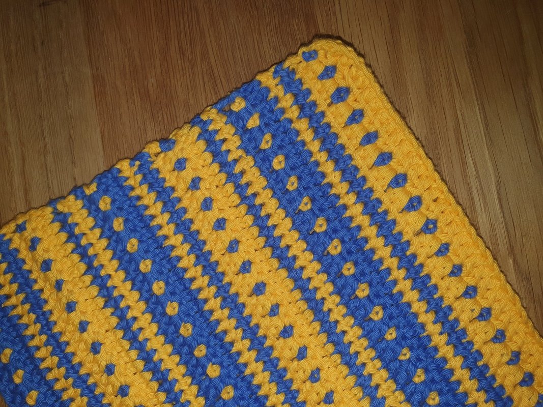 Schriftliche und bebilderte Anleitung für ein einfaches Muster in zwei Farben. Das Muster eignet sich hervorragend für Abwaschtücher, Topflappen, Decken, Kleidung, Hüllen, Tischset, Taschen....