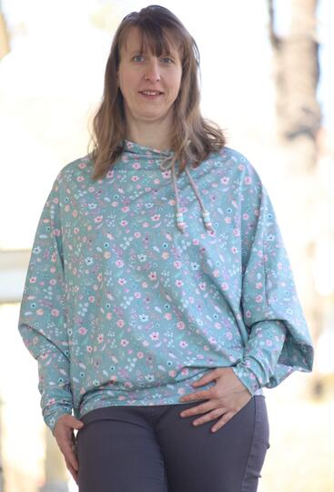 nähen. Die Ärmel fallen bei diesem Schnitt weit und luftig über die Armbündchen. Trage diese