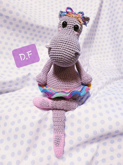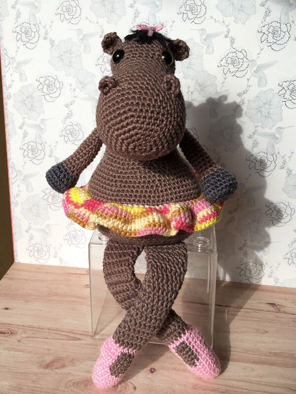 Mit dem von mir verwendeten Garn (50g~125m) und mit Nadelstärke 2,5 gehäkelt wird Grace in etwa 29 cm groß (inkl. Schlenkerbeinchen)