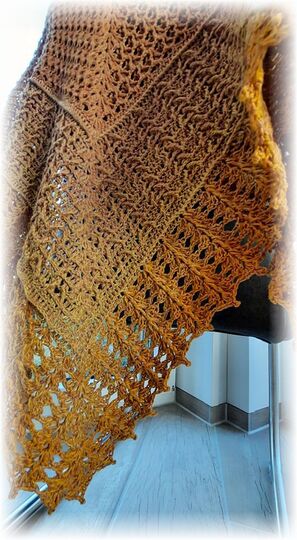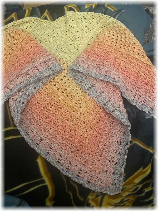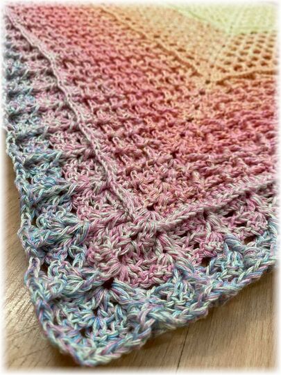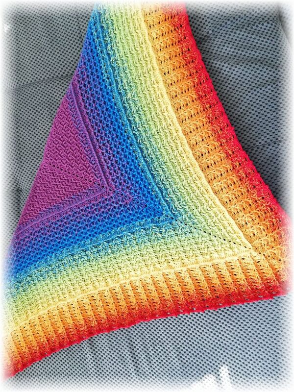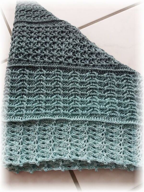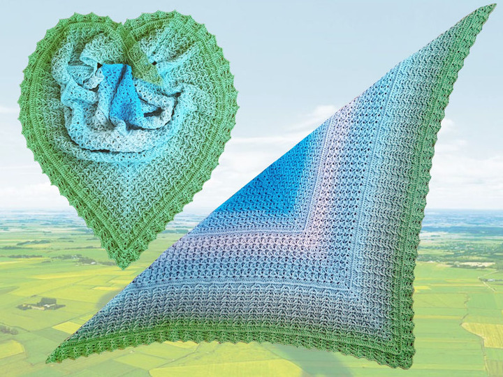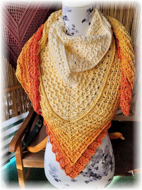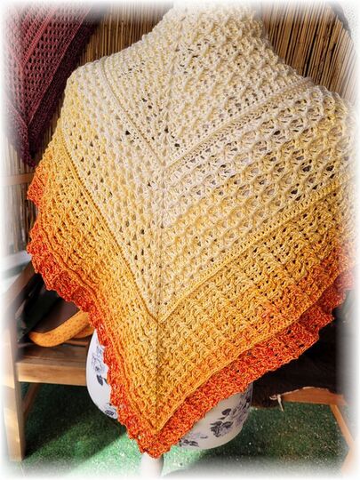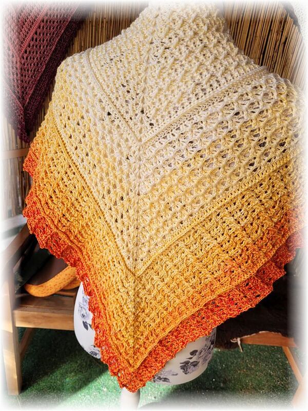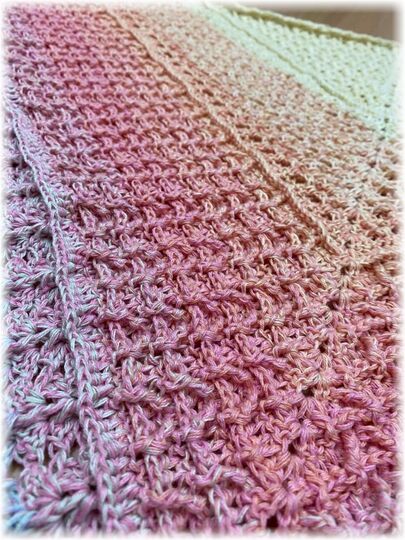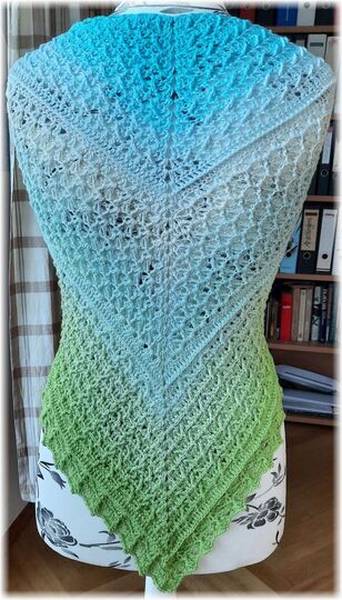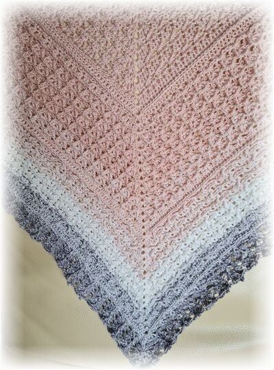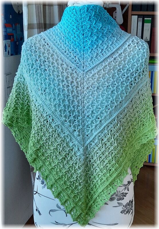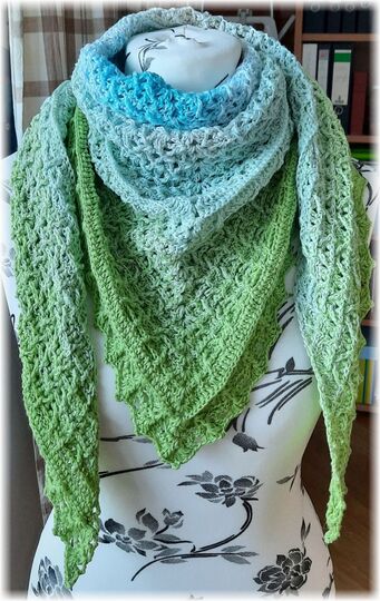 Mix Sticks ist ein klassiches Dreieckstuch. Es ist dicht, da alle Muster mit Reliefstäbchen sind.