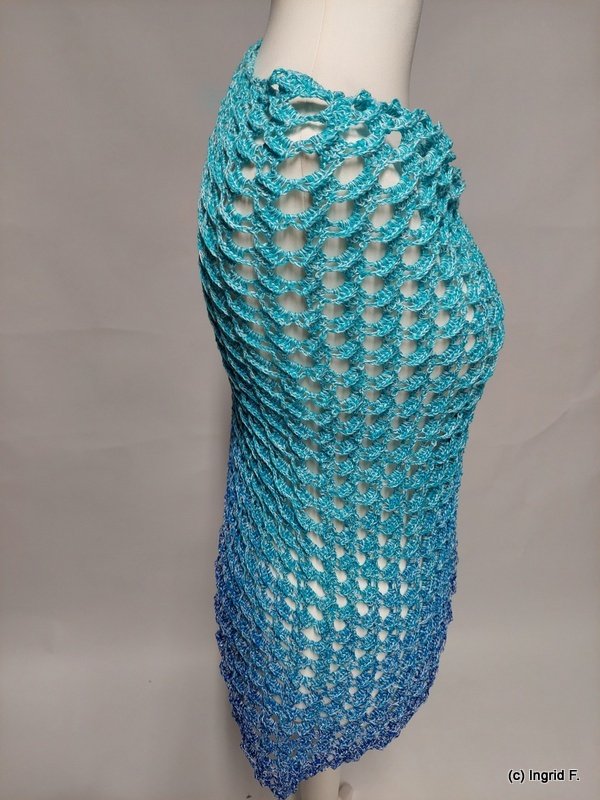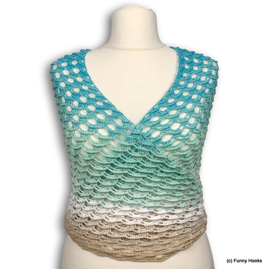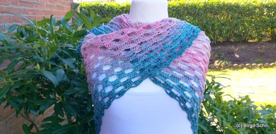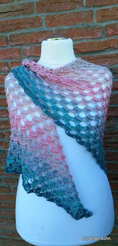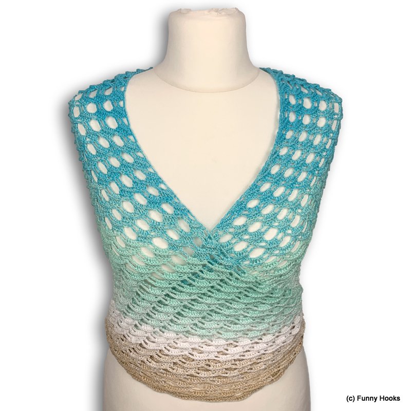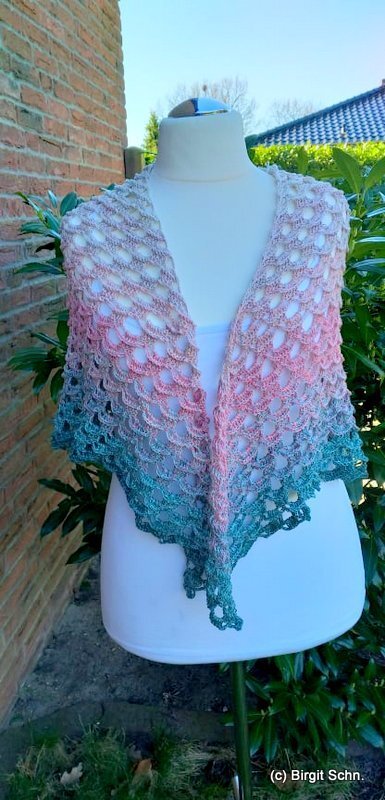 Ideal für Frühjahr und Sommer oder auch einen schönen Spätsommer. Es wird von der oberen Halskante aus bis zur Spitze gearbeitet.