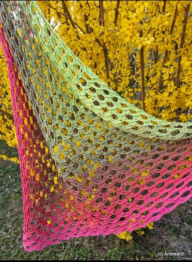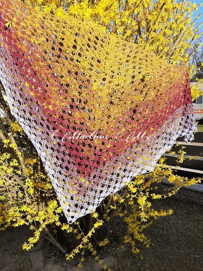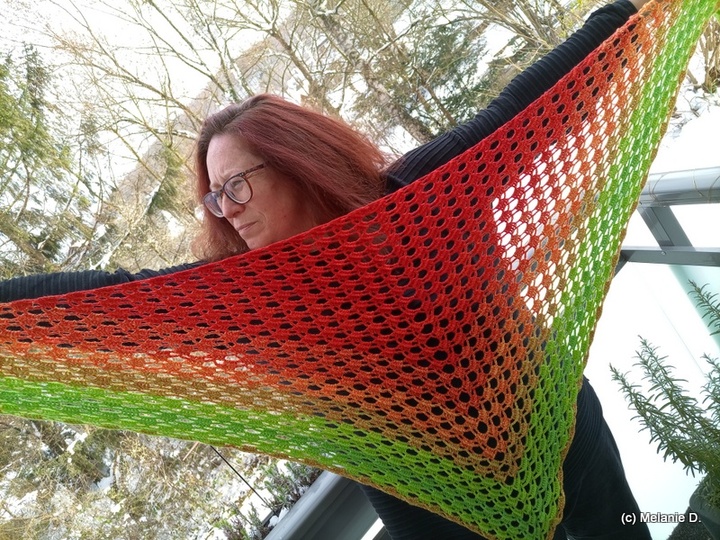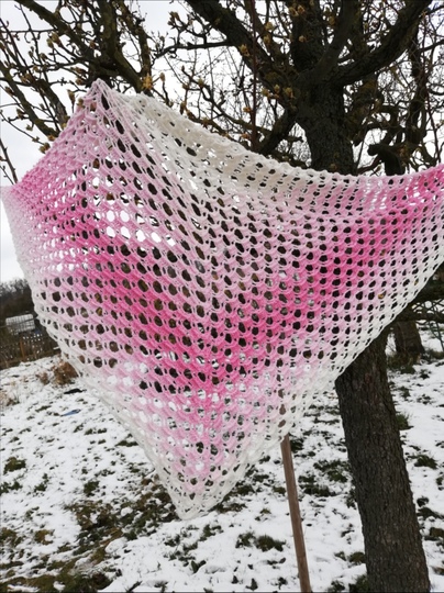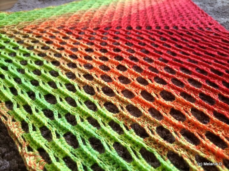 Mit dem von mir verwendeten Material (siehe Materialangabe) wurde das Tuch 200 cm x 92 cm groß.