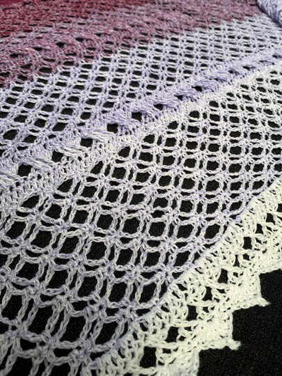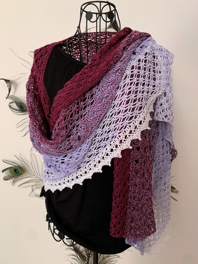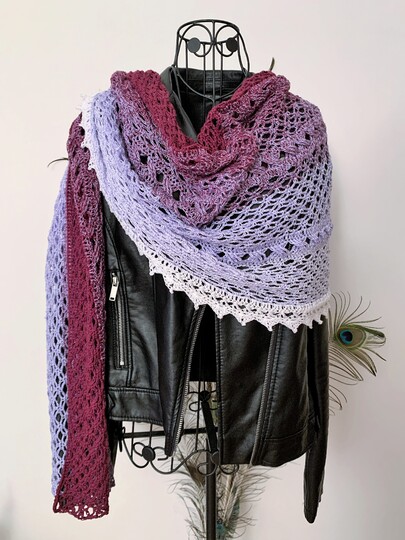 die Länge und Breite der Stola kann je nach Vorliebe verändert werden; du kannst auch beliebig viele Zwischenmuster-Reihen einbauen, und die Stola mit oder ohne Rand häkeln.