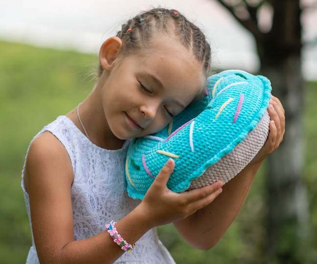 Achtung! Die Größe des fertigen Kissen Donut kann von der in der Anleitung angegebenen Größe abweichen, da jeder Mensch seinen eigenen Häkelstil und seine eigene Häkeldicke hat.