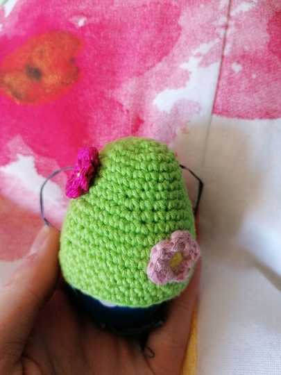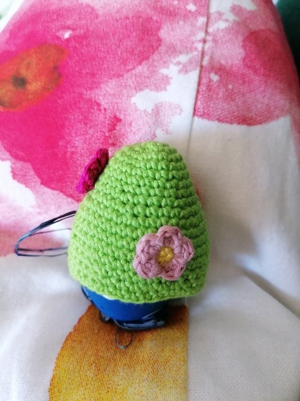 habe hier eine selbsterstellte Pdf Häkelanleitung für Eierwärmer Motiv Blumenwiese.
