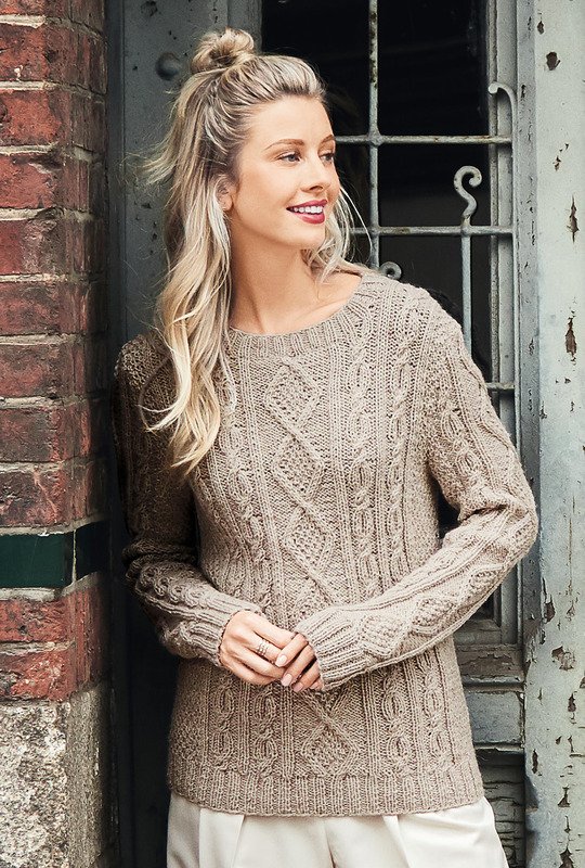 Zu hellen Hosen elegant, zu Jeans sportlich-rustikal – so anpassungsfähig zeigt sich der prachtvolle Mustermix aus edler Öko-Schurwolle mit Alpaka. Das GOTS-Zertifikat garantiert die natürliche und nachhaltige Herstellung. Rautenzöpfe und Kettenzöpfe im Aranstil, Rippen und großes Perlmuster lassen das Herz jeder leidenschaftlichen Stickerin höher hüpfen, denn wir lieben die Abwechslung beim Stricken, und dafür ist bei diesem Pullover reichlich gesorgt. Das Modell sieht auch in kräftigen Farben, die es für dieses Garn ebenfalls gibt, sehr gut aus. Die Anleitung gibt es für die Größen 36/38, 40 und 42/44.