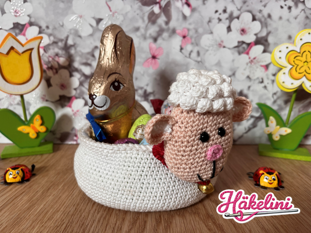 Das Schäfchen bietet viel Platz für Ostereier, Schokolade oder kleine Osterüberraschungen.