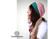 Das Bündchen muß quer dehnbar sein, das Kopftuchteil kann nach eigenen Wünschen ausgewählt werden. Du kannst hier viele Arten von dehnbaren und nicht dehnbaren Geweben in Kombination nutzen. Für das Bündchen gut querelastische Stoffe wie z.B. Strickstoffe, Jersey, Nickistoffe, Sweatstoffe, Sommersweat, Pannesamt, Viskose/Elasthan, Bündchenware und viele mehr. Für das Kopftuchteil können sowohl dehnbare wie nicht dehnbare Stoffe genutzt werden. Zum Beispiel: Seide, Baumwolle, Satin, Leinen, Viskose, Jersey uvm. und ein Stück Wäschegummi. Ich empfehle aus ähnlichem Material erst eine Probe zu nähen.