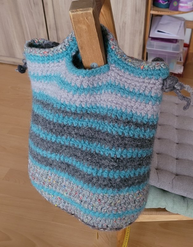 Die Tasche verbraucht ca 500 Gramm Garn.