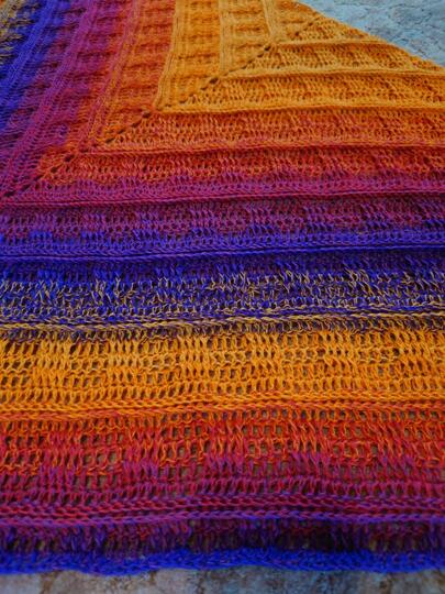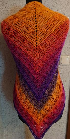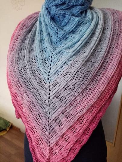 Die Anleitung zum Tuch besteht aus schriftlich ausformulierten Reihen und beinhaltet eine Häkelschrift.