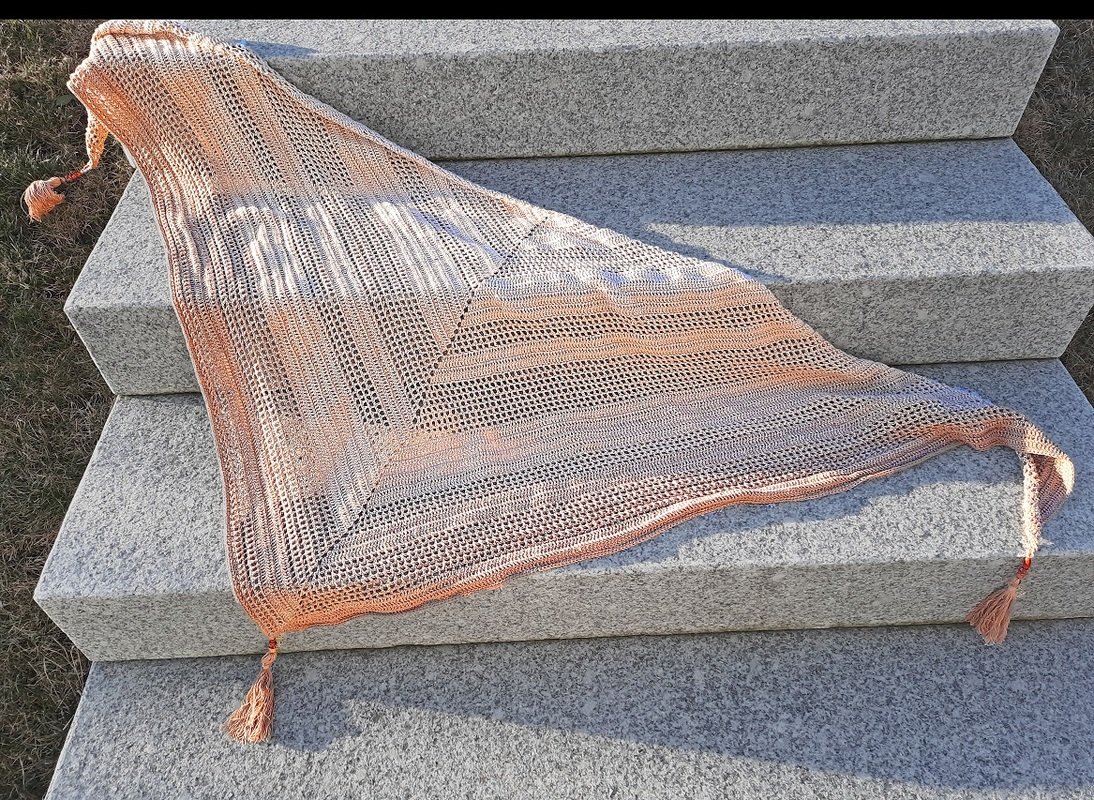 Jenny ist ein schlichtes aber dennoch besonderes Dreieckstuch, welches mit seinem tollen Muster die Blicke auf sich zieht.