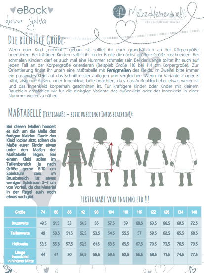 Dieses eBook Yelva beinhaltet ein Schnittmuster mit den Größen74-140.