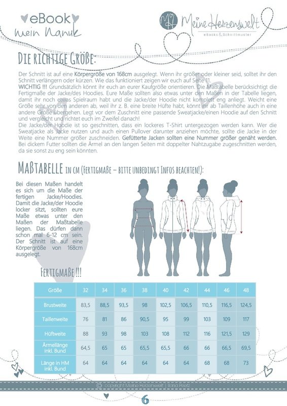 Das Schnittmustet mein Nanuc beinhaltet die Größen 32-58.