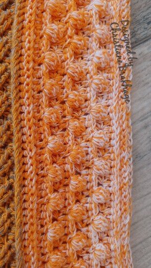 Es werden Maschen zusammen gearbeitet und tiefer eingestochen gearbeitet. Wie Büschenmaschen aus 5 zusammen abgemaschten Stäbchen