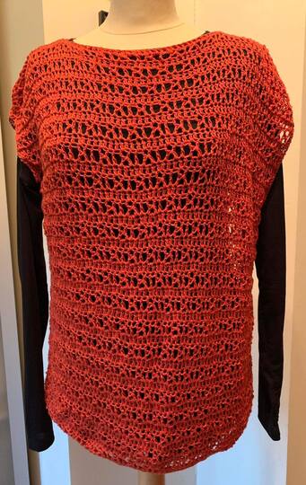 Das Shirt kann in jeder beliebigen Größe nachearbeitet werden. Für Größe 38/40 werden 800m benötigt, bitte für jede andere Größe 150m mehr oder weniger einplanen.