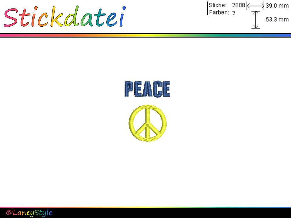 Das abgebildete Logo "LaneyStyle", die bunte Umrandung sowie Angaben zu Farbanzahl, Größe, etc. sind selbstverständlich kein Bestandteil der Stickdatei.