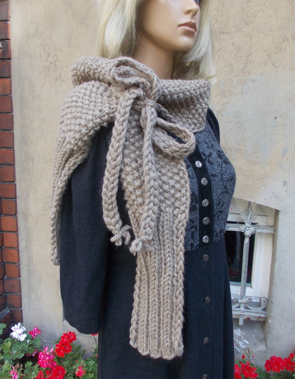 Tragevarianten: Gewickelt, als Kapuze, als Hoodie, mit Band, mit Schleife zum Durchstecken der Schalenden u.v.m.