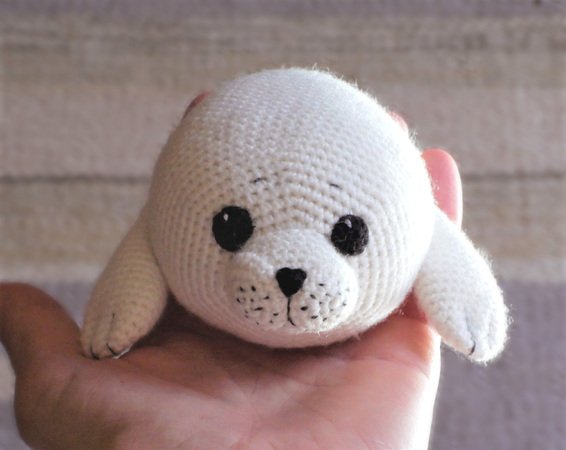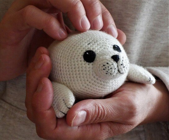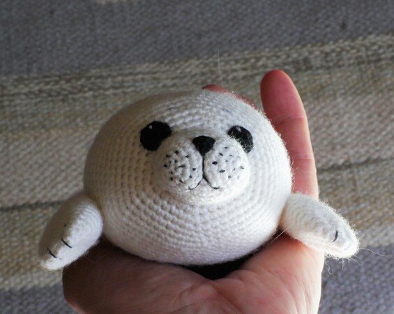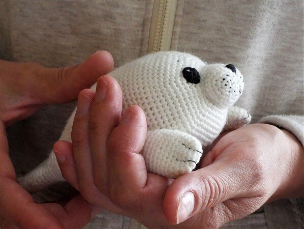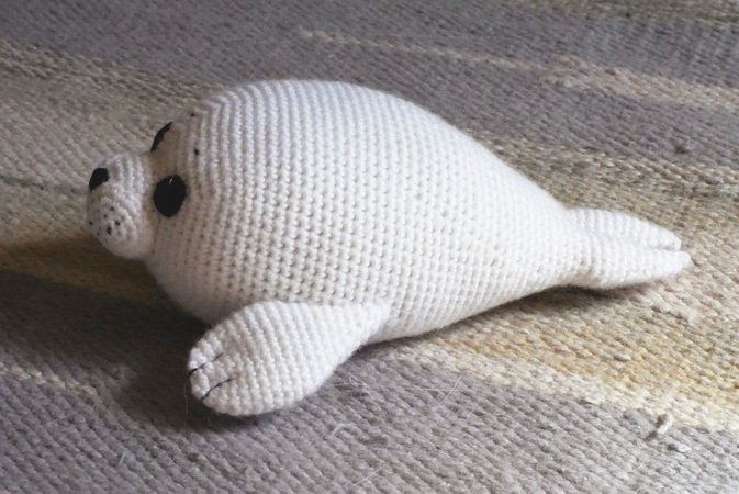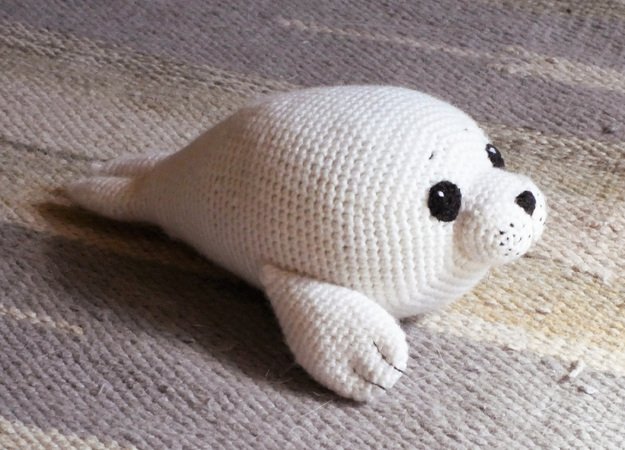 Mit Hilfe dieser Häkelanleitung kann eine niedliche kleine Robbe nachgearbeitet werden. Das Modell wurde mit Kleinkindern im Visier konzipiert – die Augen der Robbe sind ebenfalls gehäkelt und lassen sich nicht abreißen.