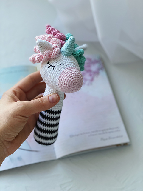 Crochet baby rattle toy Unicorn EASY CROCHET PATTERN (PDF file).