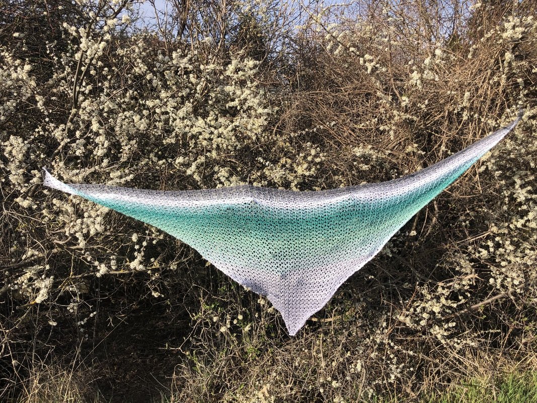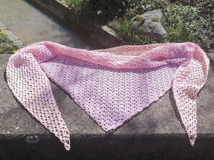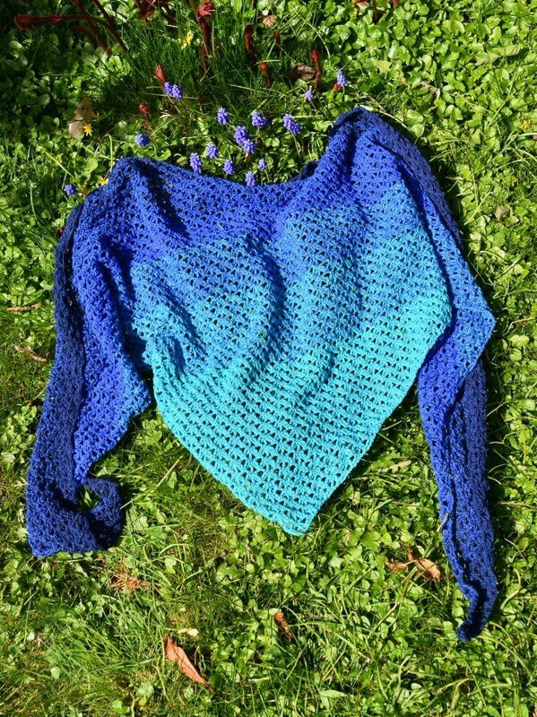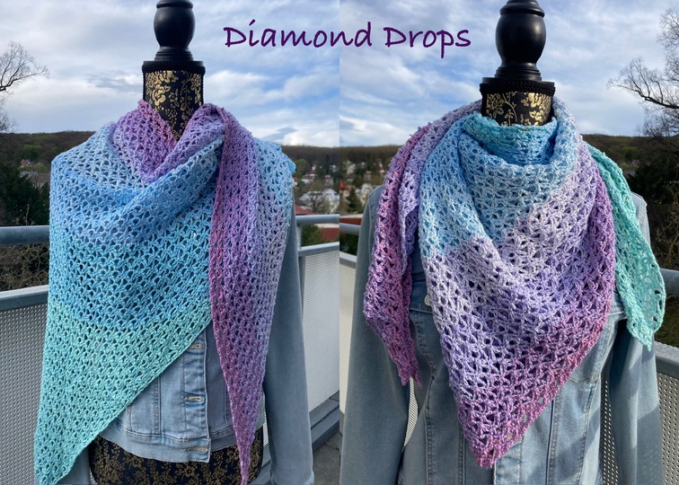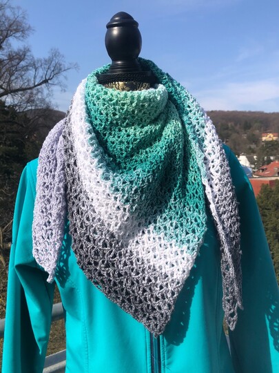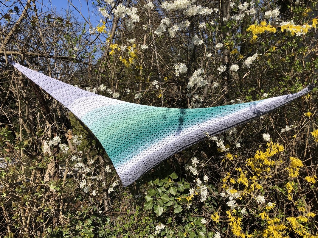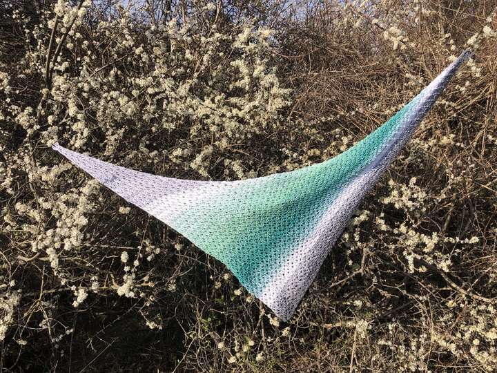 Diamond Drops ist ein flott gehäkeltes eher luftiges Dreieckstuch mit flacher Form und einem simplen aber effektvollem Muster, chillig zu häkeln und passend für jede Jahreszeit.