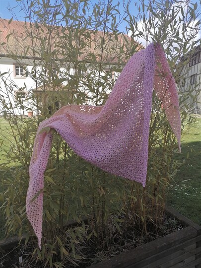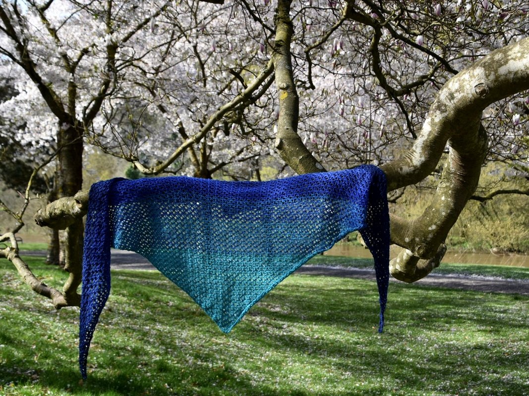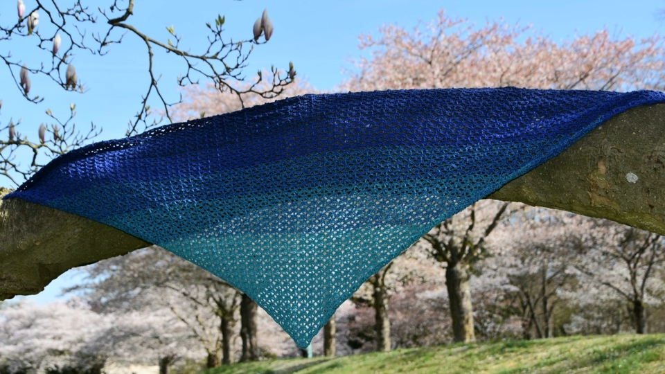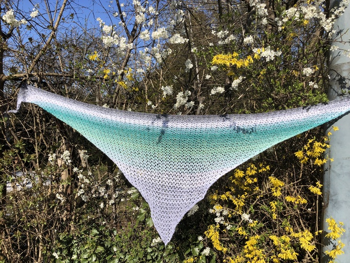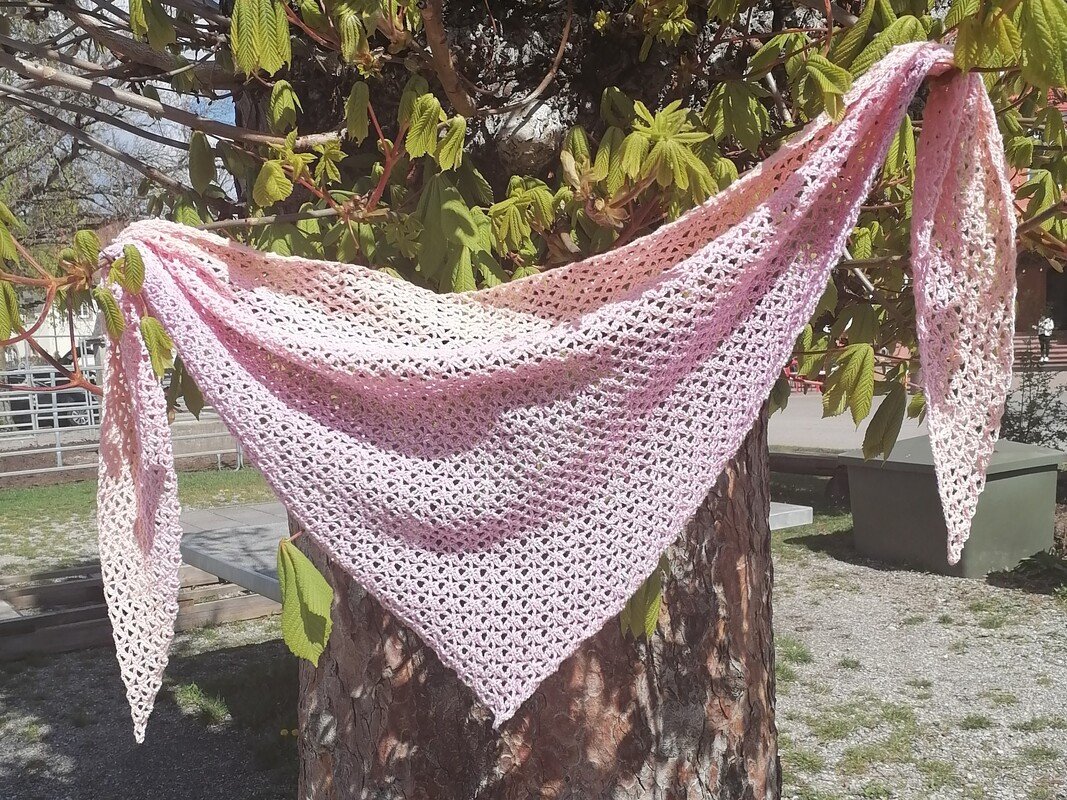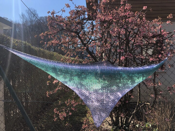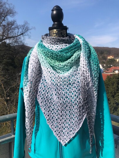 Diamond Drops ist ein flott gehäkeltes eher luftiges Dreieckstuch mit flacher Form und einem simplen aber effektvollem Muster, chillig zu häkeln und passend für jede Jahreszeit.