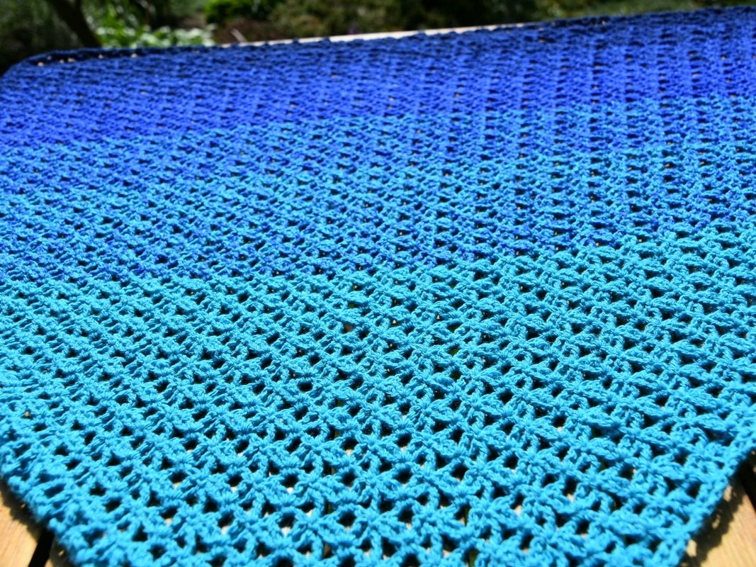 Das Tuch hat ein Endlosmuster und kann daher in beliebiger Größe gearbeitet werden.