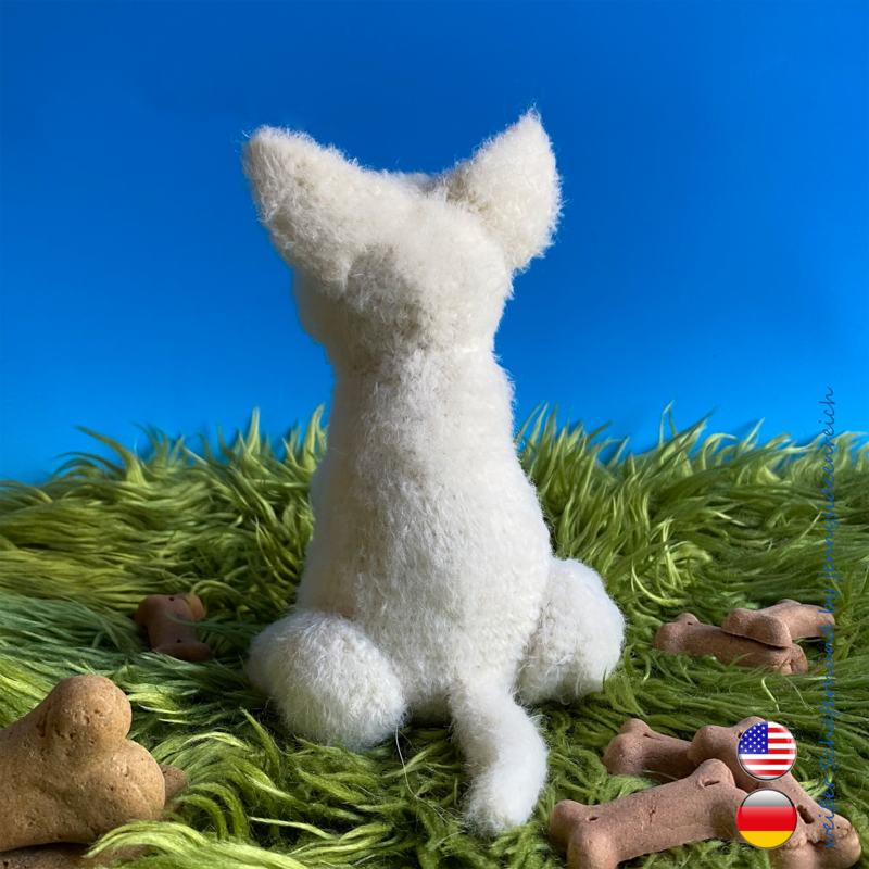 Ihr könnt hier die komplett ausformulierte Häkelanleitung zu meinem weißen Schäferhund erwerben.