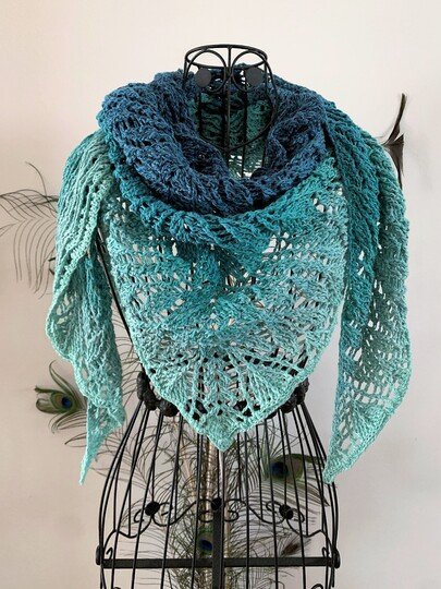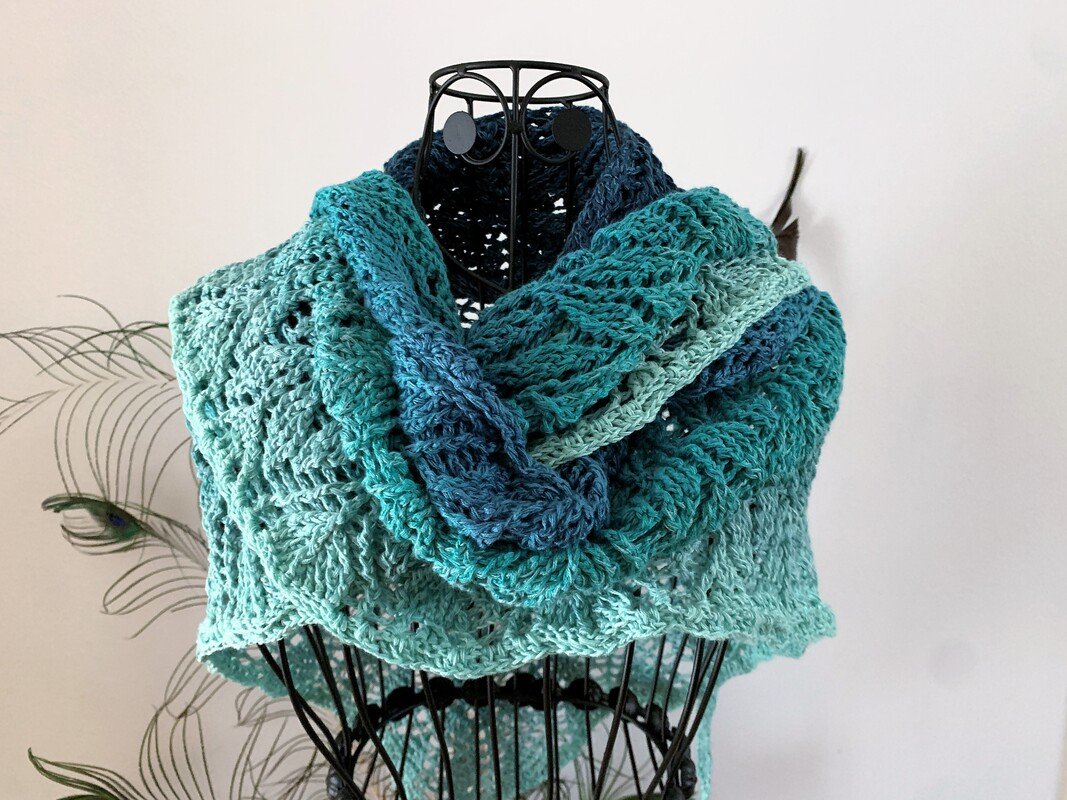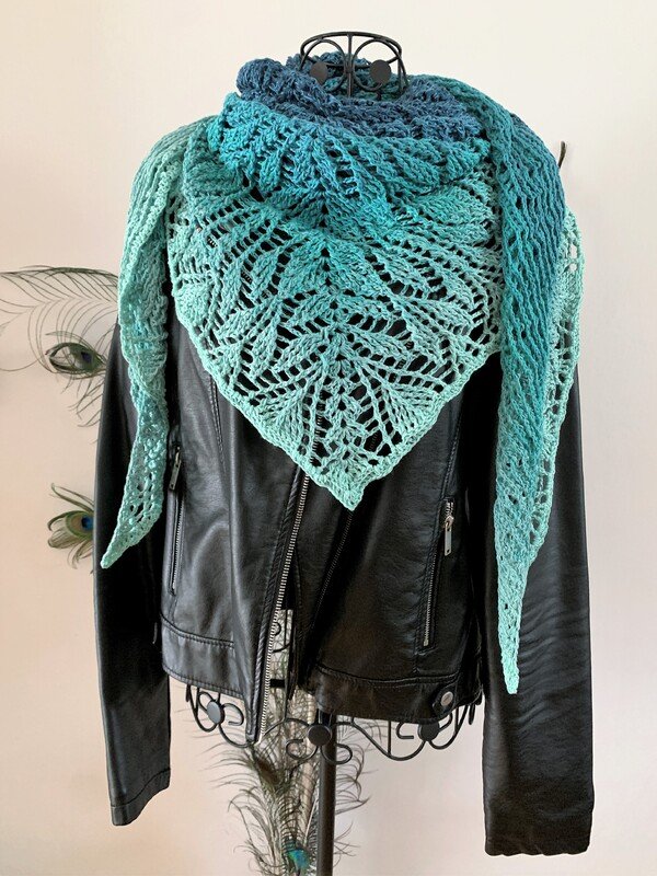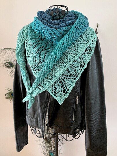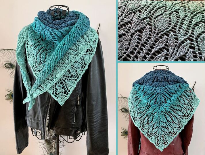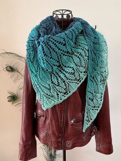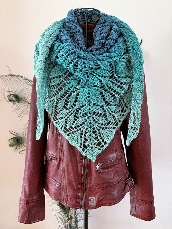 Mit dieser Anleitung kannst du ein lockeres, luftiges Dreieckstuch "Perimede" häkeln. Es besticht durch ein auffälliges Blättermuster, ist luftig und daher ideal für den Frühling und Sommer geeignet, und macht Spaß beim häkeln!