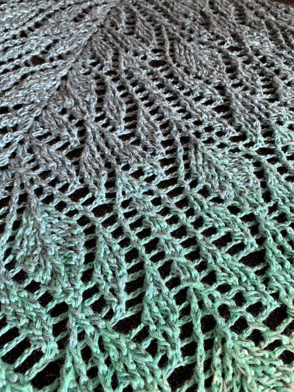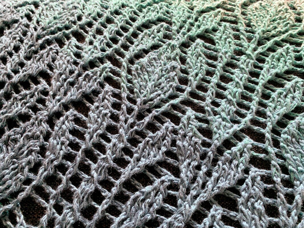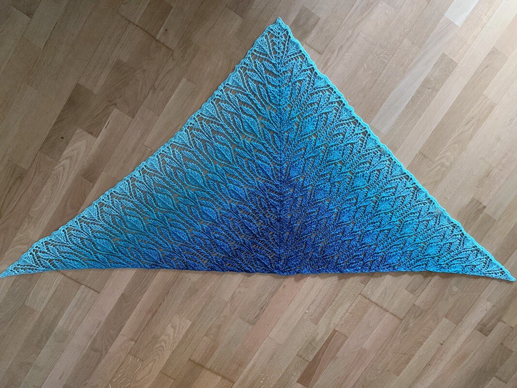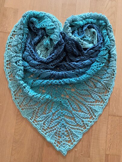 Das fertige Tuch hat eine Größe von 185 x 90 cm. Wenn du andere Wolle, oder eine andere Häkelnadelstärke verwendest, kann die Größe natürlich ein wenig abweichen.