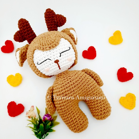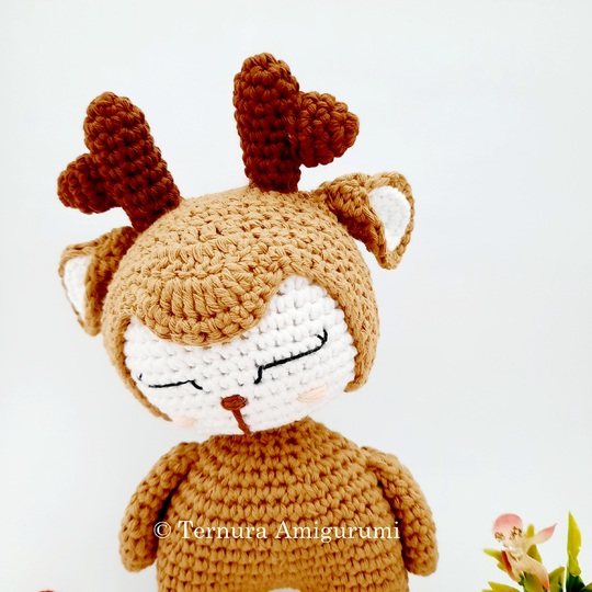 Ich präsentiere Ihnen dieses niedliche Reh, das sich sogar mit geschlossenen Augen in Erwachsene verliebt. Ich habe es geliebt, es zu machen, und es ist ideal für Babys, da es keine Kleinteile hat. Kinder werden es lieben, mit diesem Reh zu spielen, und Sie werden es auch lieben, es zu machen! Die fertigen Maße betragen ca. 22 cm. Die Größe kann je nach Größe der Nadel und des Fadens variieren.
