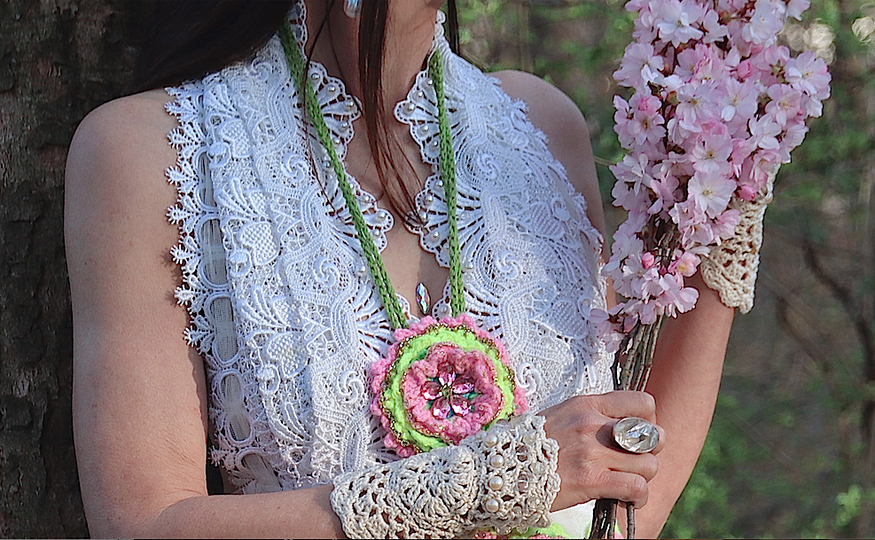 eine Kette, oder als inovativen Haarschmuck / Brautschmuck mit meiner Blüte Elfengarten