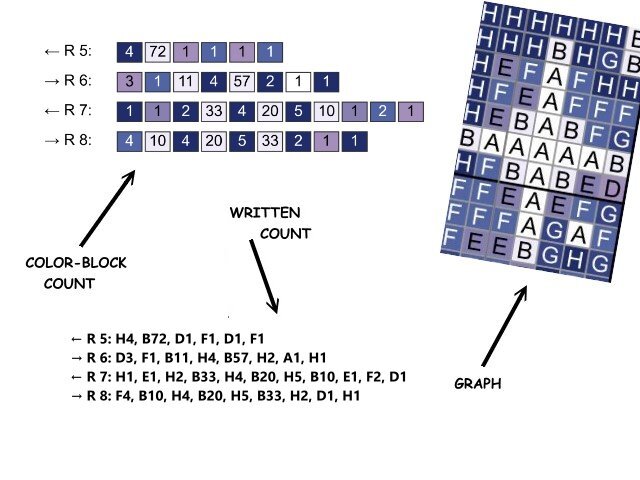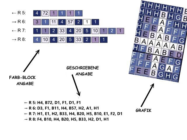 -farbige Zahlen-Blöcke für jede Reihe für feste Maschen (Stb od. hStb)