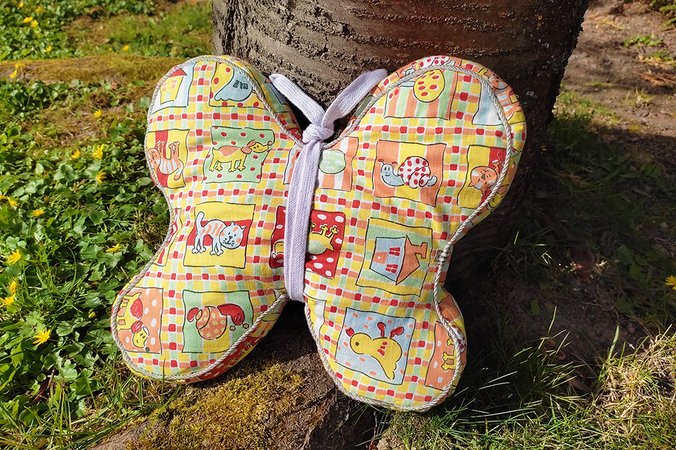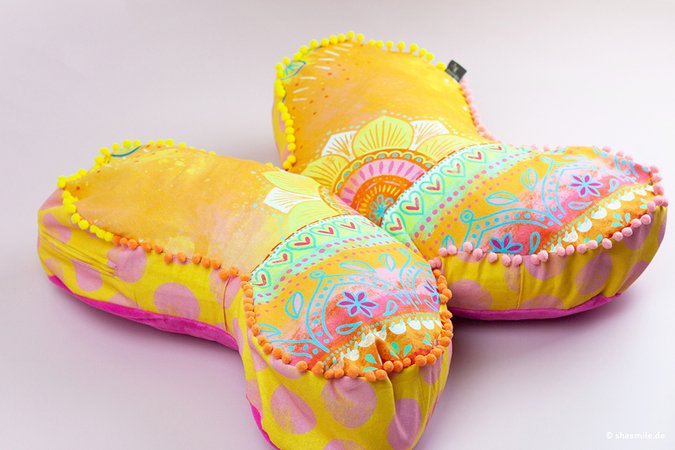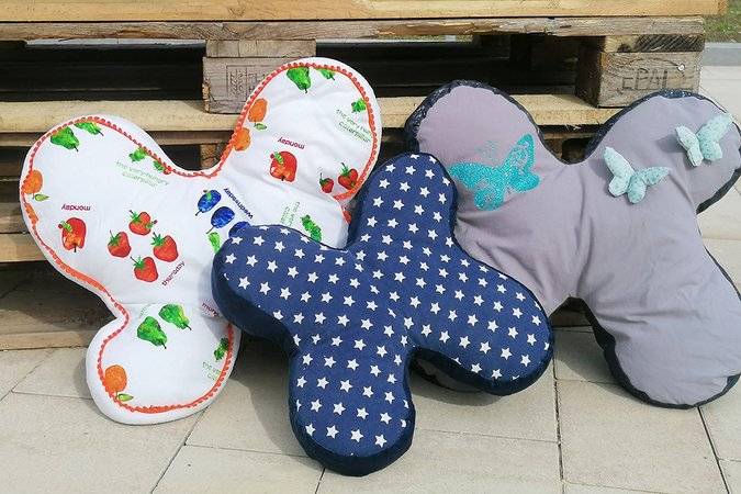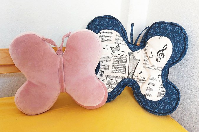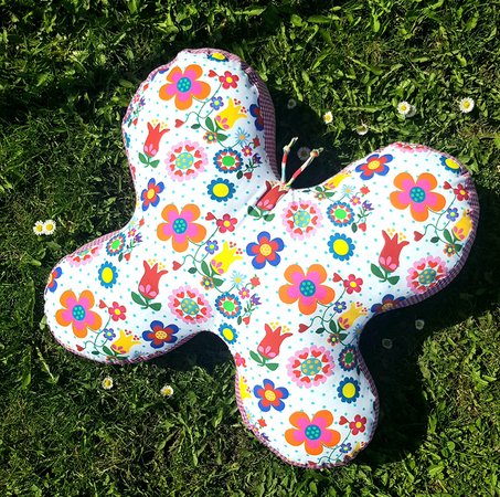 Als Nackenkissen auf Reisen oder im Auto, Dekokissen im Wohnzimmer, Kuschelkissen im Kinderzimmer oder als Kissenbezug für Gartenpolster - Steffi Schmetterling ist schnell und einfach genäht und vielseitig und flexibel einsetzbar.