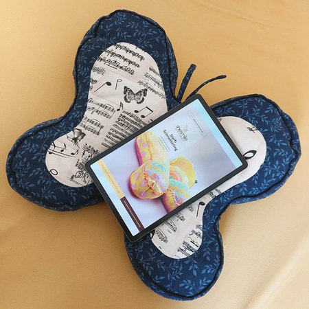 Nähanleitung und Schnittmuster in zwei Größen gestaltet als PDF-E-Book für ein Schmetterlingskissen Steffi.