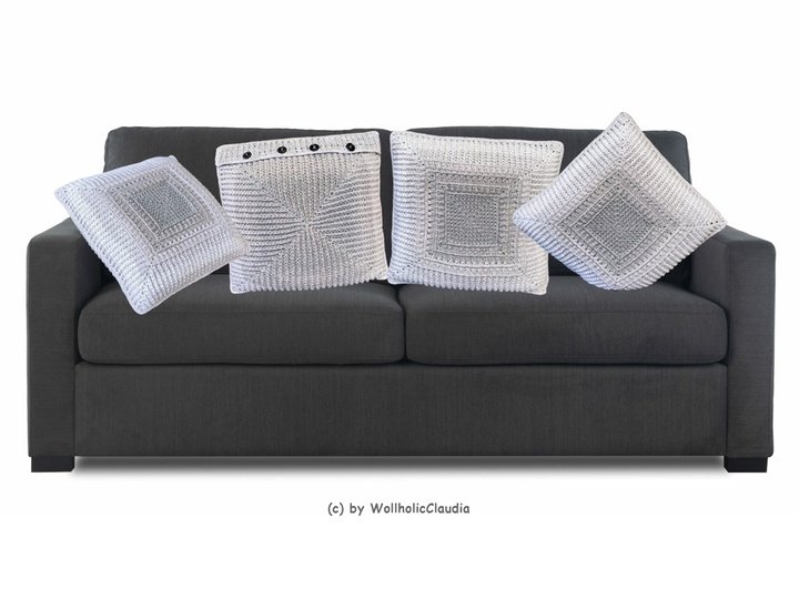 Diese wunderschönen Kissen sind passend zur Decke „Hypnotic“ entworfen worden.