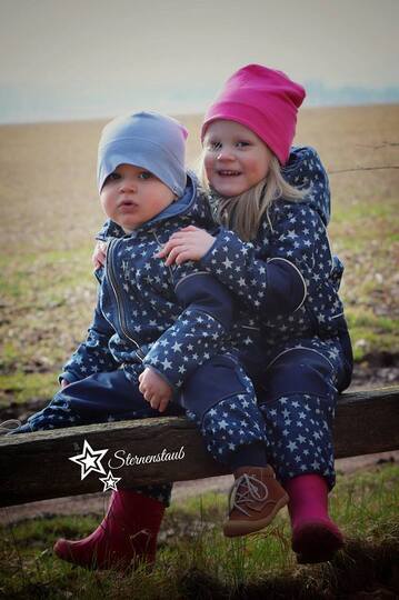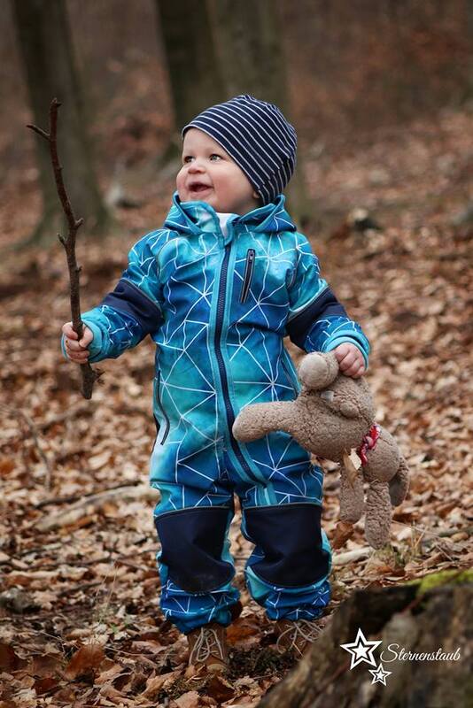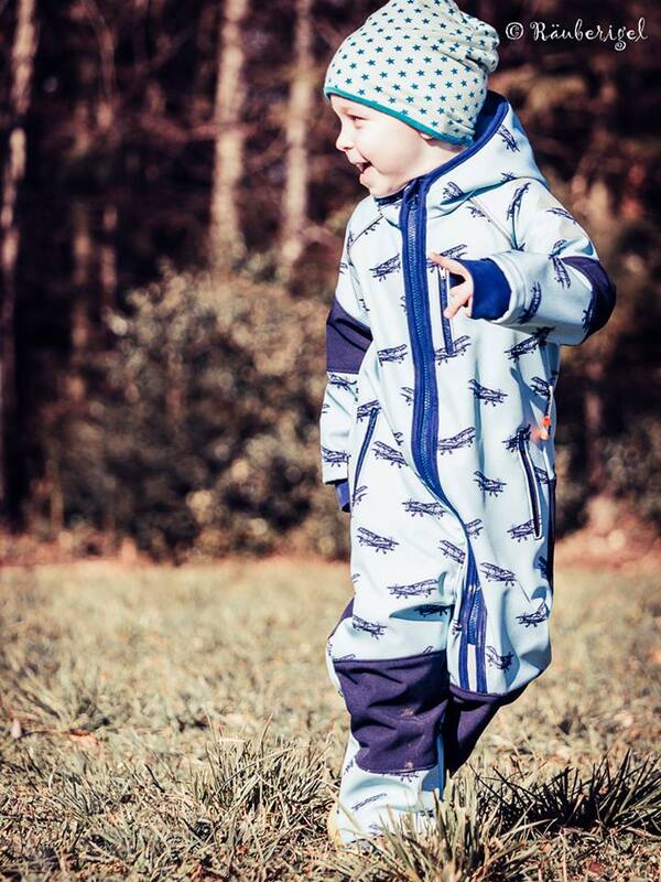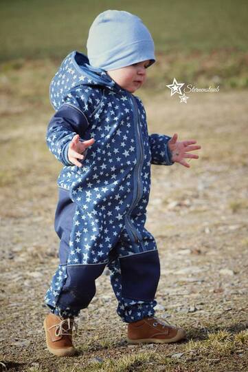 Der Overall wird einlagig genäht und ist vor allem für Softshell gedacht. Er kann aber auch aus anderen nicht dehnbaren Materialien wie z.B. Walk genäht werden, gerade für kleinere Kinder ist so ein Walkoverall eine tolle Sache.