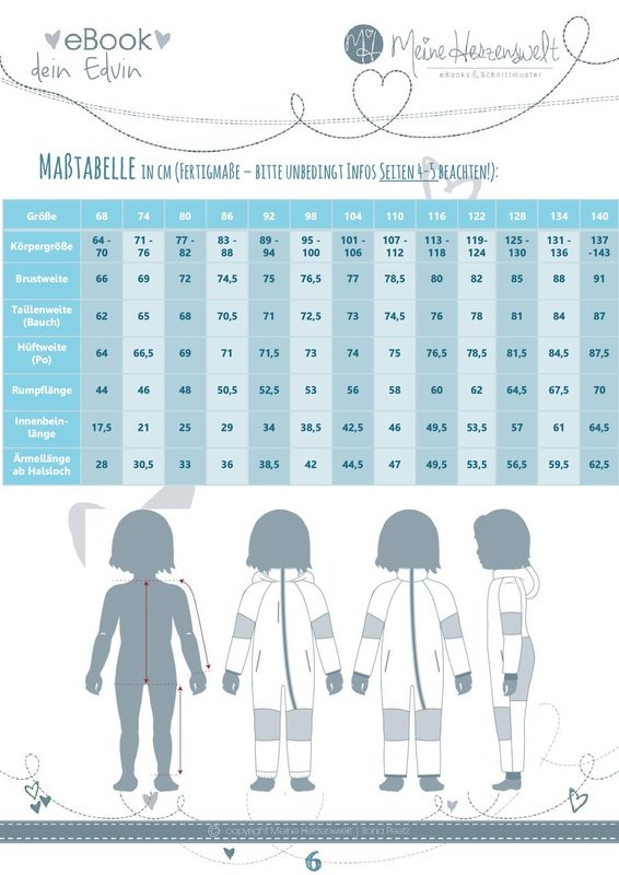 Dieses eBook dein Edvin beinhaltet ein Schnittmuster mit den Größen 68-140. Wir möchten dich bitten, dich VOR dem Nähen unbedingt mit den Passforminfos auf den Seite 4-6 zu beschäftigen.
